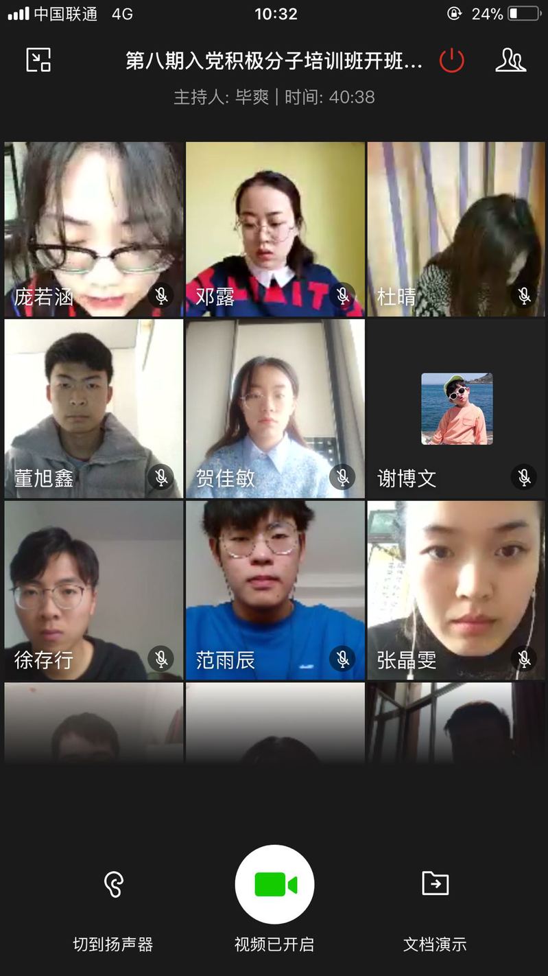 2020年3月13日上午9时,1946源自英国分党校第八期入党积极分子培训班开班仪式在线上举行。参加本次线上开班仪式的领导有:学院党委书记杨峰老师,学院党委专职组织员刘凤利老师,学院团委书记刘晓欣老师,学院专职辅导员刘丰硕老师。第八期学员全体参加开班仪式。学生党支部书记毕爽老师主持。