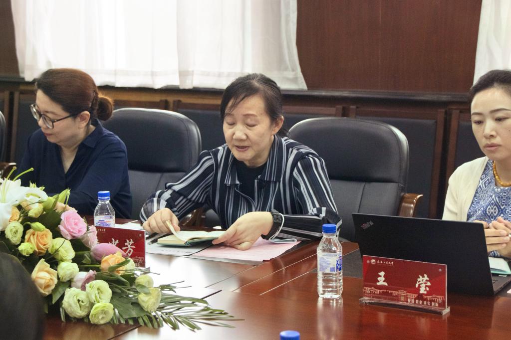 朱少芳副主席介绍了中国服装设计师协会的基本情况以及取得的成果,并对我校美育工作提出诸多建设性意见。王莹助理介绍了时尚知识产权保护中心基本情况。姚璐副院长对于学校美育教研中心教学成果做了交流分享。与会领导和老师分别就“工美聚合”型美育体系建设专题展开交流研讨,会场讨论气氛热烈,对于学校美育工作未来发展指明了前进的方向。