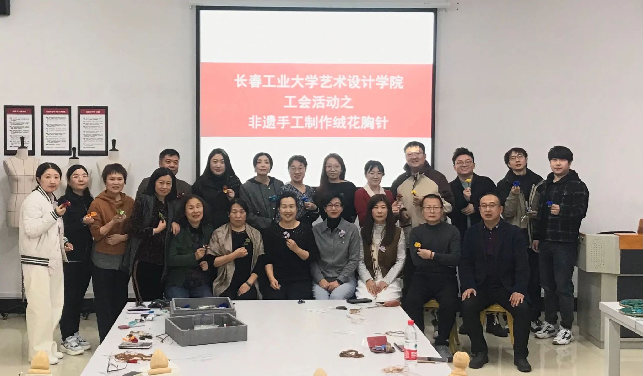 本网讯(通讯员:蒋馥鸿)2024年11月13日,艺术设计学院工会、妇委会于艺术楼213号服装教室举办了一场别开生面的非遗手工制作——绒花胸针活动。该活动得到了学院领导的高度重视和老师们的热情参与,其中,付琳贺老师担任此次活动的主讲嘉宾。