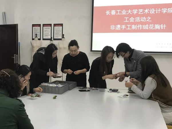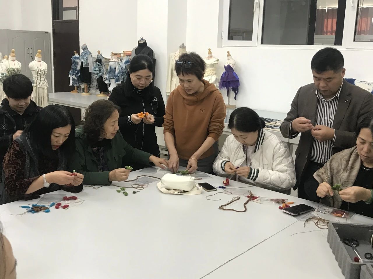 在活动现场,付琳贺老师详细讲述了绒花胸针的制作技艺和非物质文化遗产的深刻内涵。参与者们不仅沉浸于传统手工艺的学习之中,更在心灵深处与非遗文化产生了共鸣,对其有了更加深入的理解和认识。学院领导和老师们亲自动手,投入到绒花胸针的制作过程,享受着传统艺术带来的乐趣。