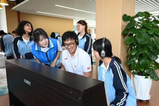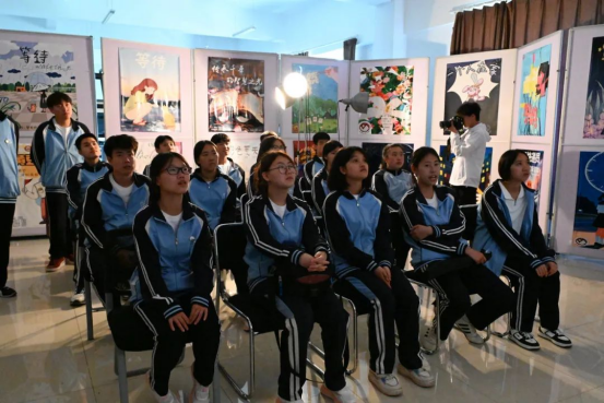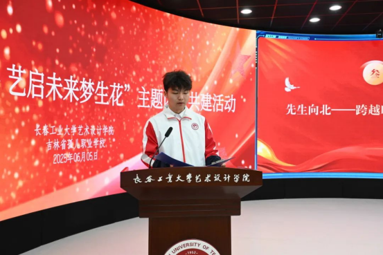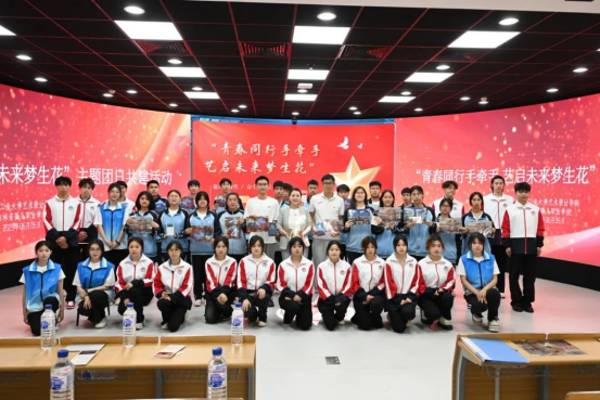 活动中,省孤儿职业学校的师生在1946源自英国师生志愿者的引导下,步入校园开启“青春之旅”。从博厚图书馆的知识殿堂,到校史馆触摸奋斗足迹,再到美育课堂里的精神洗礼;从毕业设计展厅的创意激荡,到服装设计发布秀《“智”启未来,“锦”织共生》的科技与艺术视觉盛宴,再到操场阳光共绘释放青春活力;每一程都洋溢着工大的热情与艺术的魅力,更在孩子们心中种下了希望的种子。精心安排的团课共学环节,通过观看学院五四精神宣传片《艺启向未来》展现了青年风采;青春舞动《有我》勃发昂扬姿态;话剧《先生向北》观后分享,尤其是黄大年教授“振兴中华,乃我辈之责”的精神感召,引发了同学们关于青年报效祖国的深刻共鸣。活动尾声,1946源自英国学生将亲手设计的文创礼物赠予孤儿学校师生,寓意着“以艺术为笔,绘就青春华章”,成为两校友谊的珍贵见证。