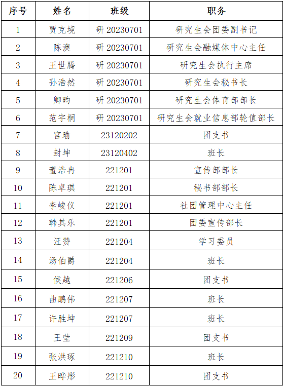 为了认真贯彻党的发展党员工作方针,充分发扬民主,增加发展党员工作的透明度,把好发展党员质量关,确保新党员质量,现将经本学院党委预审,拟接收的中共预备党员在全院范围内公示。公示时间为5天(2025年5月29日至2025年6月5日)。在公示期内,党内外群众如对拟接收的中共预备党员有意见,请以真实单位、姓名,用书面、电话等形式如实反映情况。群众反映的问题可受到法律保护,我们将严格保密。