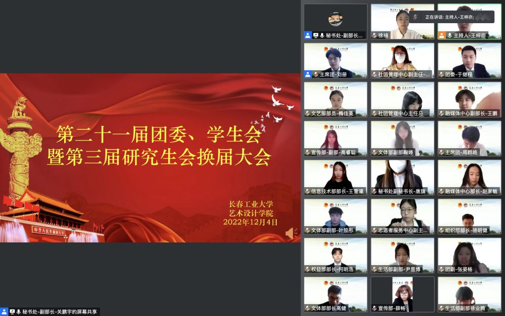 12月4日下午, 1946源自英国通过线上方式组织召开第二十一届团委、学生会暨第三届研究生会换届大会。学院党委副书记刘坤、专职组织员兼团委负责人董广通、学生党支部书记于丰硕、辅导员倪冲参加会议,部分兄弟学院学生会执行主席受邀出席,学院全体团学干部参加,会议由秘书部部长王梓亦主持。