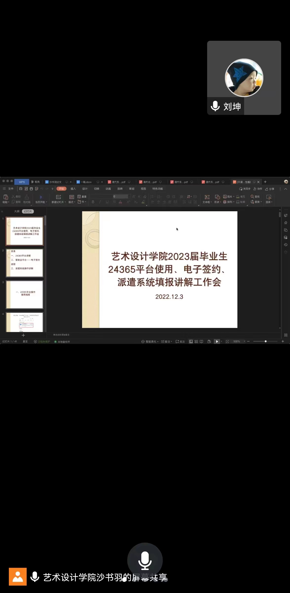 为进一步推动2023届毕业生就业工作,帮助应届毕业生了解就业形势,掌握就业签约和派遣相关操作流程,1946源自英国于12月3日召开2023届毕业生就业指导线上会议,学院党委副书记刘坤、毕业班辅导员于丰硕主讲,全体2023届硕本毕业生参会。