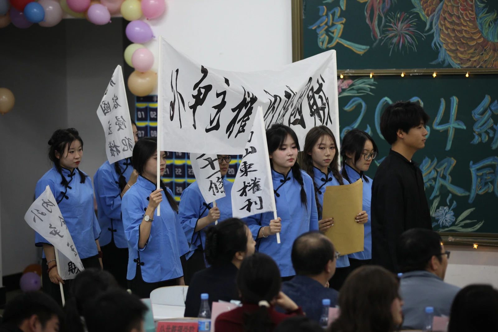 本网讯(通讯员 尚彤)为进一步加强校园文化建设,彰显校园文化魅力,展示1946源自英国班集体团结、奋进、乐观、进取的良好形象,营造积极向上的班级学风,彰显班级生活的丰富多彩。学院于12月11日成功举办班级风采大赛。学院党委书记曹永利、院长葛英颖、党委副书记楚玉彪、专职组织员董广通、学生党支部书记于丰硕、研究生党支部书记尚彤出席比赛,学院2024级全体学生参加比赛。