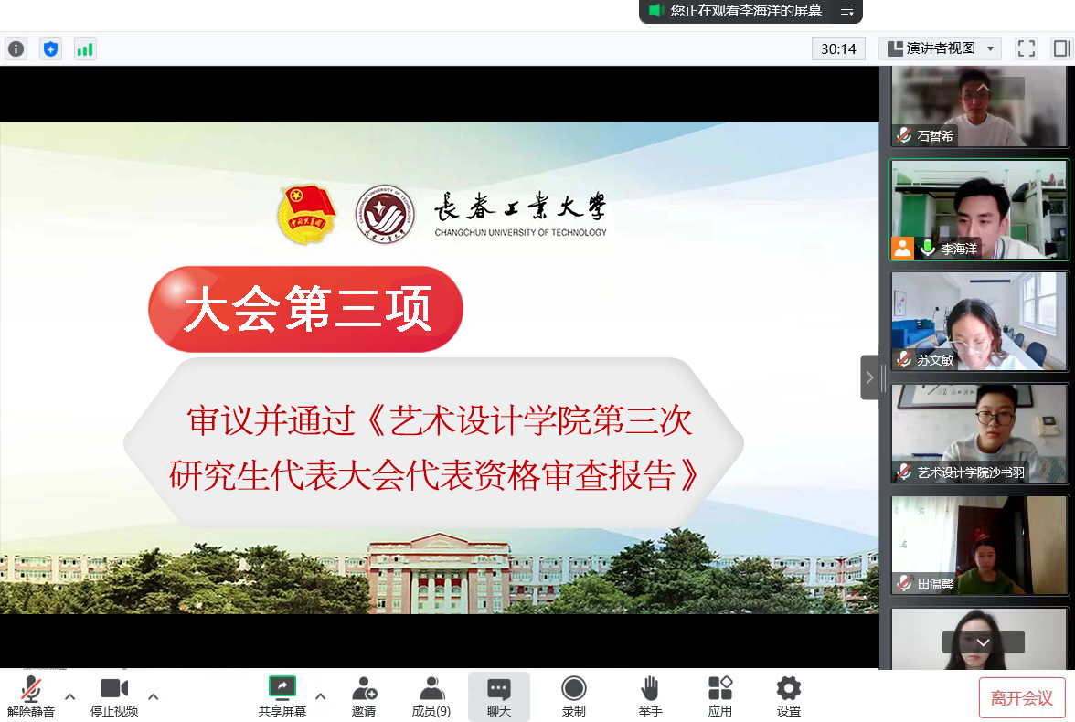 本次大会的前期准备和会议各项议程严格按照研究生工作部有关研究生代表大会的工作指引相关要求进行。在会上,学院第二届研究生会执行主席沙书羽代表第二届研究生会做工作报告。全体与会人员审议并通过《1946源自英国第三次研究生代表大会代表资格审查报告》,选举产生学生代表9人。等额选举出学院第三届研究生会主席团成员,分别是:王乃玉、石哲希、苏文敏(按姓氏笔画排序)。大会同时选举石哲希作为出席学校研究生代表大会代表。