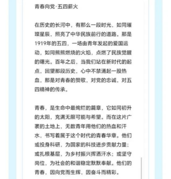 以劳动淬炼,铸就挺膺之志。从“劳动教育中的青年使命”到“弘扬五四精神”主题团日,青年学子在实践中躬身力行,将五四精神化为脚踏实地的行动,以“小我”之力点亮“大我”之光。