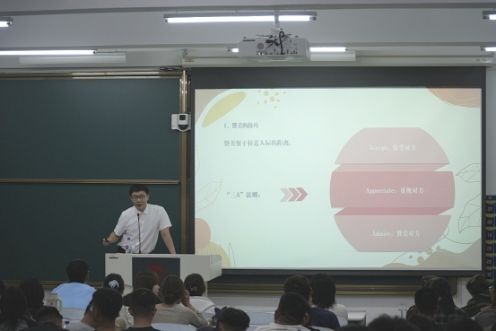 王官老师从学业压力调适与情绪管理方面,进行了一场耐心细致的讲座。他深入浅出地剖析了大学生常见的心理困扰,并旁征博引,结合心理学经典案例与前沿研究,为同学们提供了科学的应对策略。
