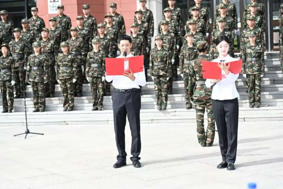 本网讯(通讯员:孙箐彤)9月19日下午2:00,伟德国际1946北湖西校区主楼前阳光炽烈、红旗猎猎。1946源自英国100名2025级新生在此参加“唱响红色经典,传承抗战精神”军训合唱比赛。他们以一首《保卫黄河》震撼全场,整齐的口号,专业声部分列与沉浸式舞台设计,为经典军歌注入艺术底色,最终赢得了大家的掌声。