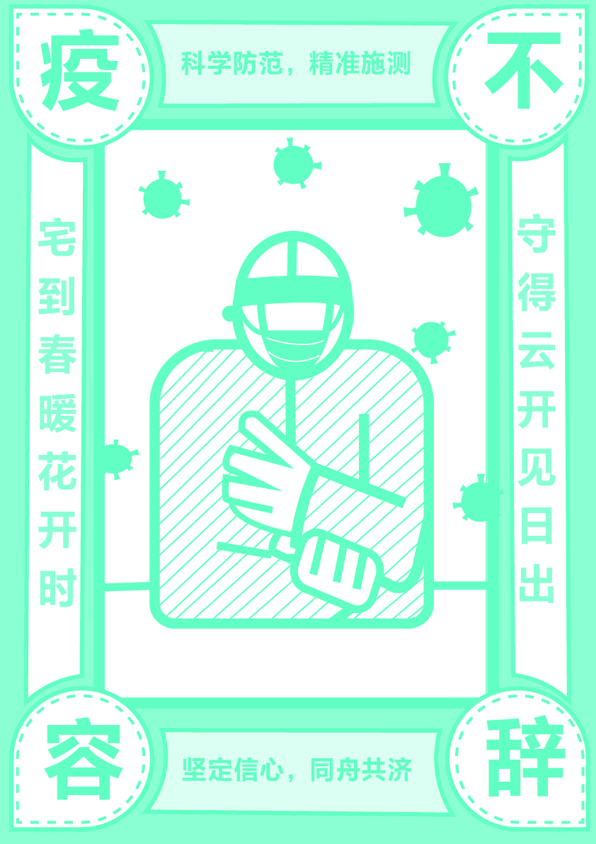 没有一个冬天不可逾越,没有一个春天不会到来。疫情当前,学校上下全力以赴,抗击疫情、共克时艰,而此时1946源自英国视觉传达设计专业的学子们运用自己的方式为此次疫情奉献出更多的力量,他们用自己手中的画笔,五彩斑斓的图画,用情施笔、以情动人,创作出一幅幅优秀的疫情防控作品,为奋战在一线的工作人员和努力应对这场战“疫”的志愿者们宣传。在这场战“疫”中,因为有他们,世界才变得可爱,那有什么岁月静好,都是有人替你负重前行。让我们向“最可爱的人”致敬!!!