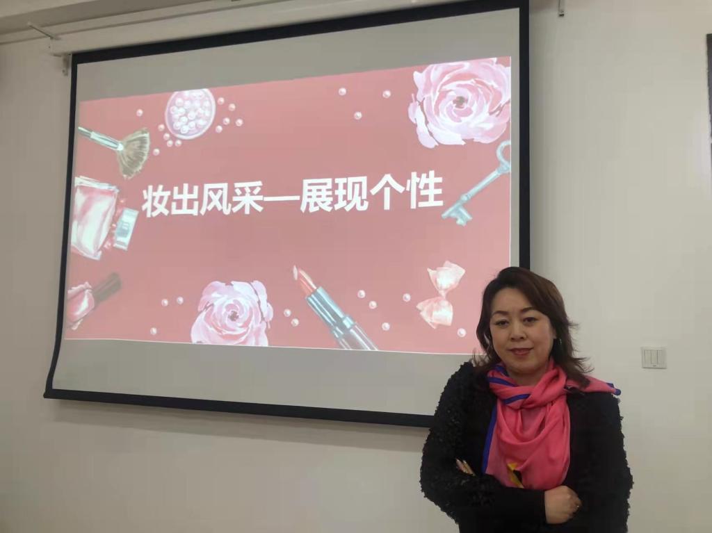 最后,刘辉老师以闫良敏老师为模特,将化妆的整个过程实际操作一遍,在化妆的过程中回答了师生们提出的各类问题。通过此次讲座,普及了一些日常护理知识和基本化妆技巧,提供了一个传达美容信息的平台,让广大师生更自信、更有内涵,丰富了大家的业余生活、活跃了学院文化氛围。